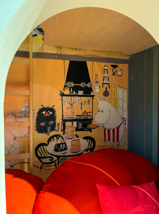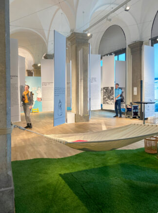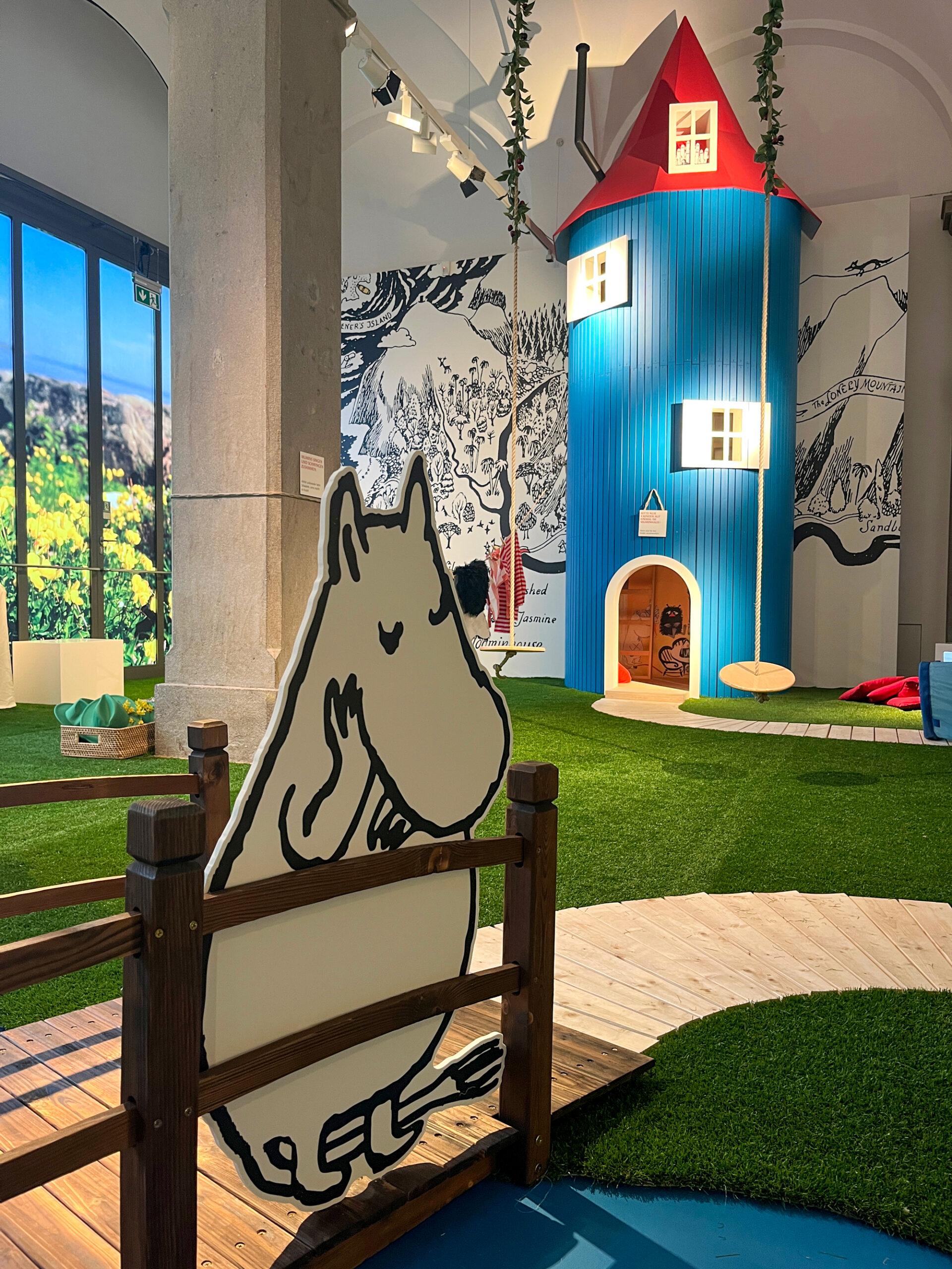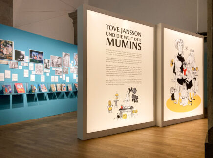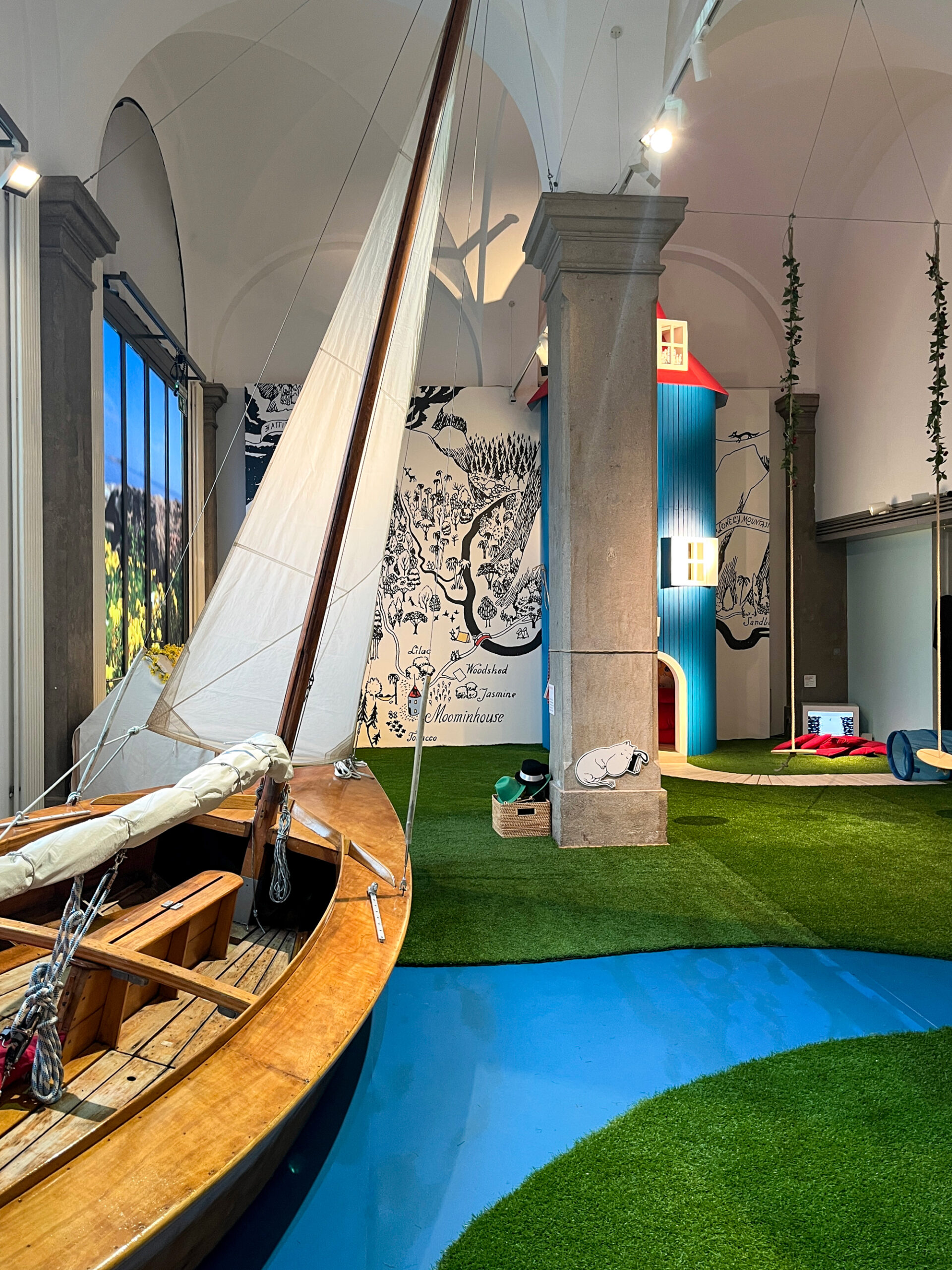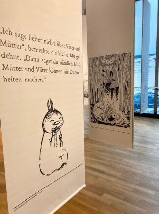 Viel gibt es zu erfahren über die wichtige finnische Künstlerin Tove Jansson, deren Geschichten und einmalige Illustrationen im Mittelpunkt der Ausstellung stehen. Gleichzeitig werden die in den Büchern vermittelten Werte und die viele Emotionen für die Kinder unmittelbar und spielerisch erlebbar gemacht. Eine kleine Muminwelt mit Schiff und Brücke, Haus und Höhle lädt zu Entdeckungen ein. Es darf gespielt werden, gemeinsam, zusammen, rücksichtsvoll und manchmal braucht man dazu sogar ein bisschen Mut. Es wird vorgelesen und geschaukelt, geklettert und gelesen. Eine Welt für alle!